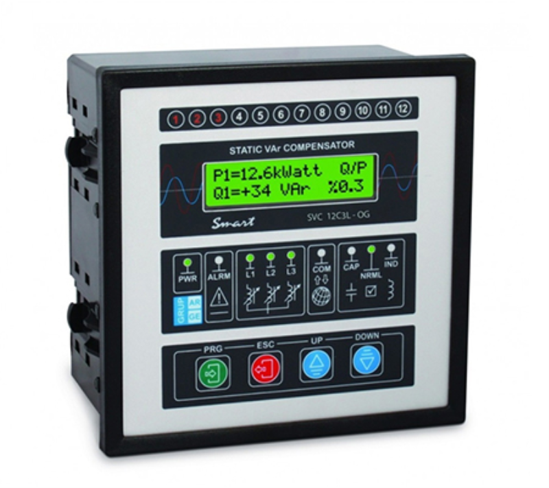 Smart SVC12C3L yeni nesil bir kompanzasyon rölesidir. Klasik kompanzasyon rölelerinin aksine sadece kondansatör kademelerini kullanarak sisteme cevap vermeye çalışmaz bunun beraberinde endüktif yük sağlayan bobinlerin de (şönt reaktör) güçlerini ayarlayarak devreye alır. Bu sayede klasik rölelere göre sisteme çok daha hızlı ve tam olarak cevap verir.
